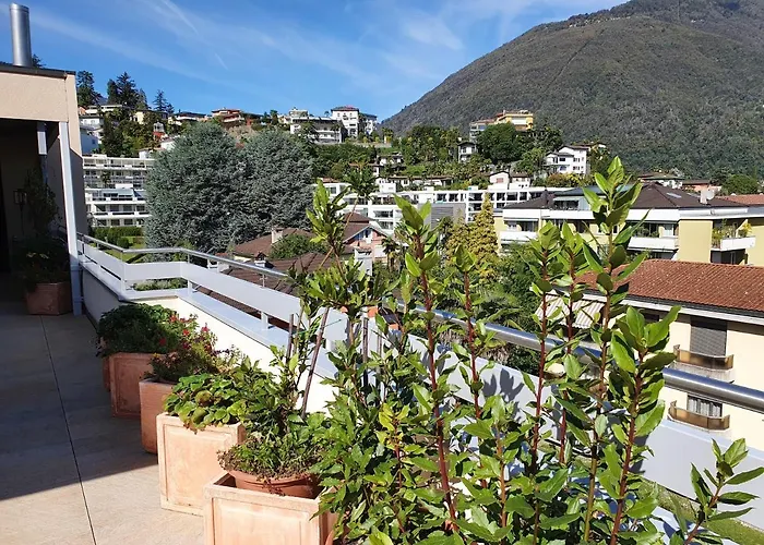 Ascona: San Carlo Attika Lägenhet med 2 sovrum, som ligger 8 minuter till fots från Fondazione Monte Verita, erbjuder bastu och inomhuspool. Den här 90 m² stora lägenheten erbjuder moderna faciliteter som Wi-Fi, samt en parkering för bilresenärer.